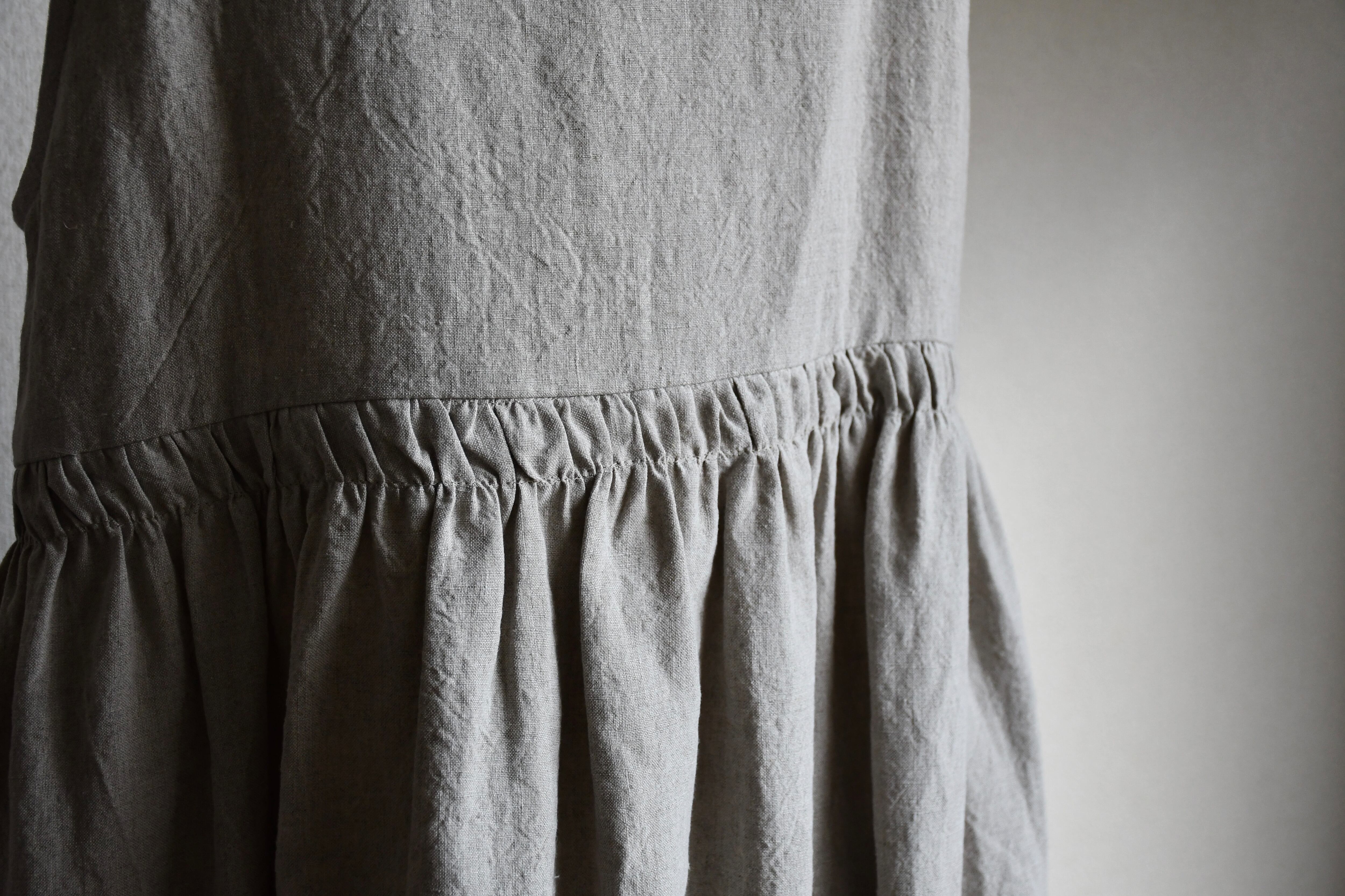 胸下の切り替えからたっぷりと入れたギャザーが、自然なドレープを生み出し、体のラインをやさしく包み込みます。