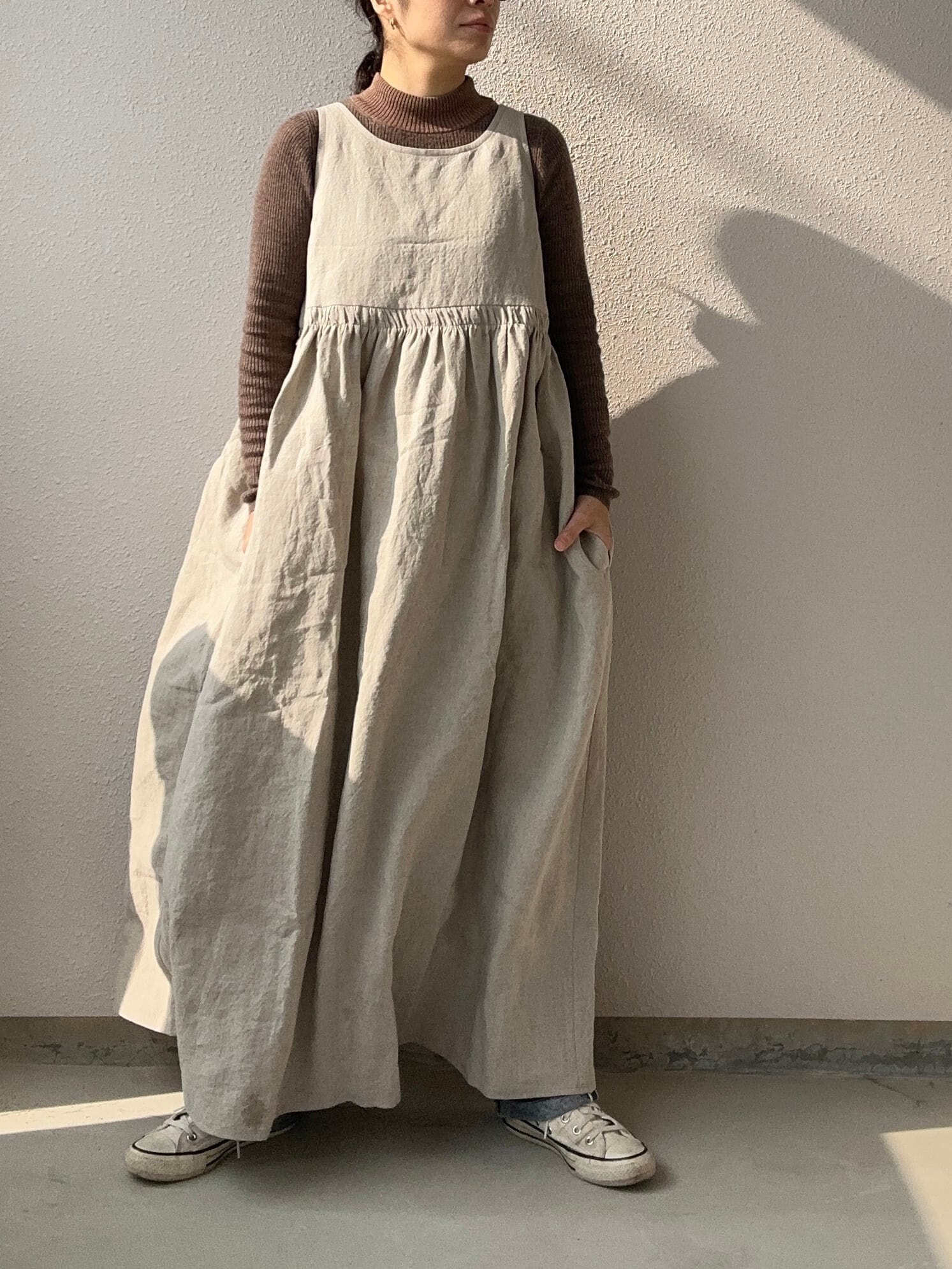 上質なリネン素材を贅沢に使用した、ノースリーブのロングワンピース。