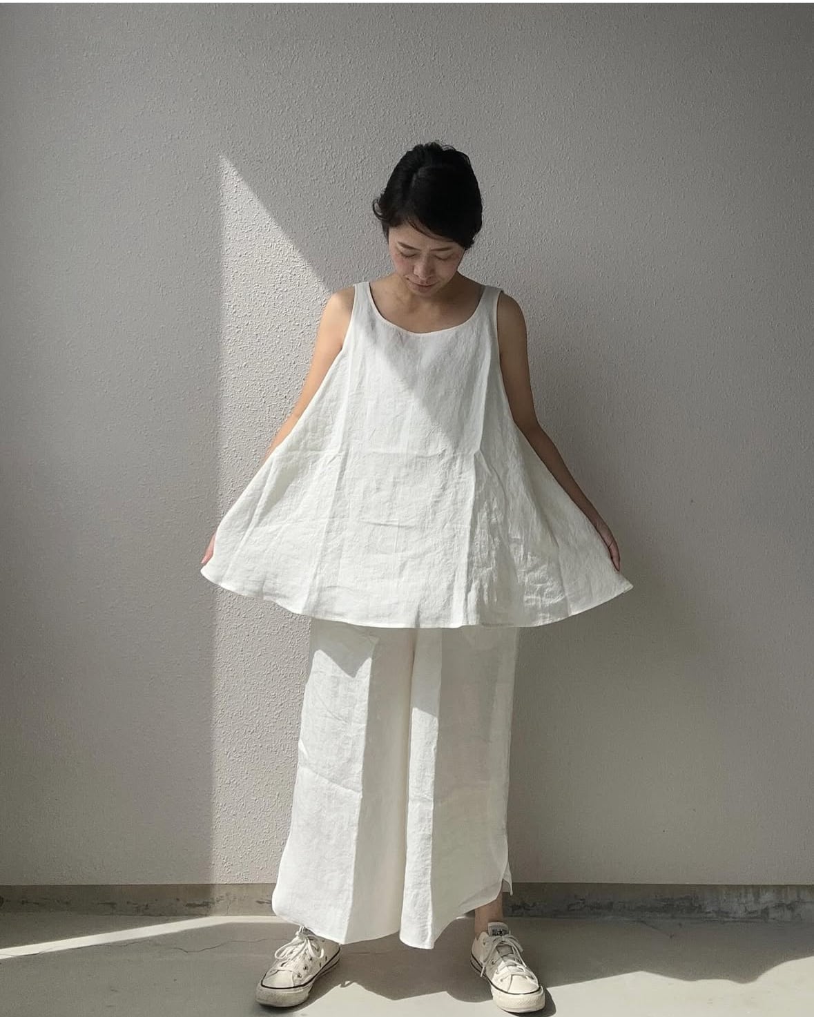静かに呼吸するようなリネンタンクトップ