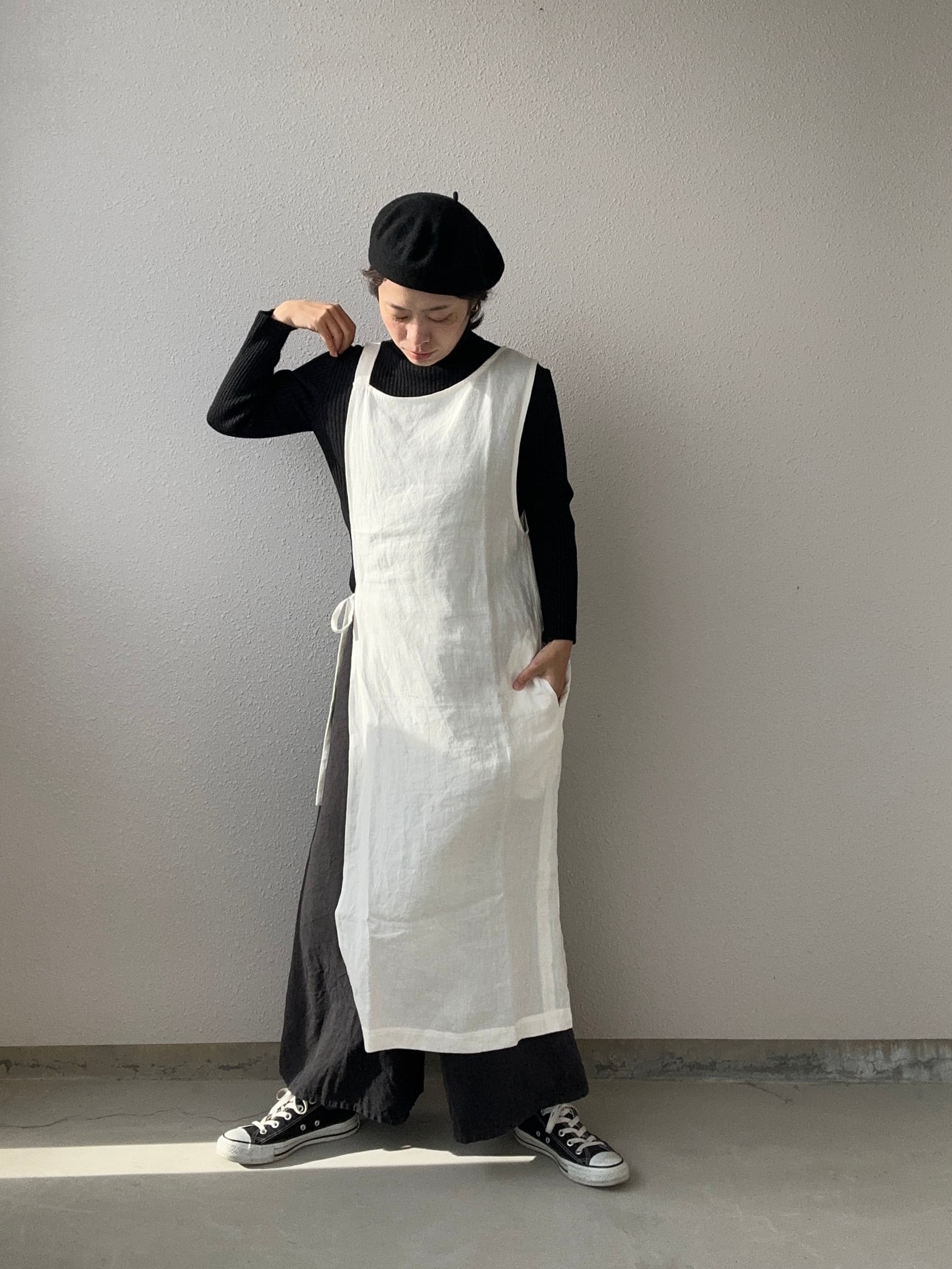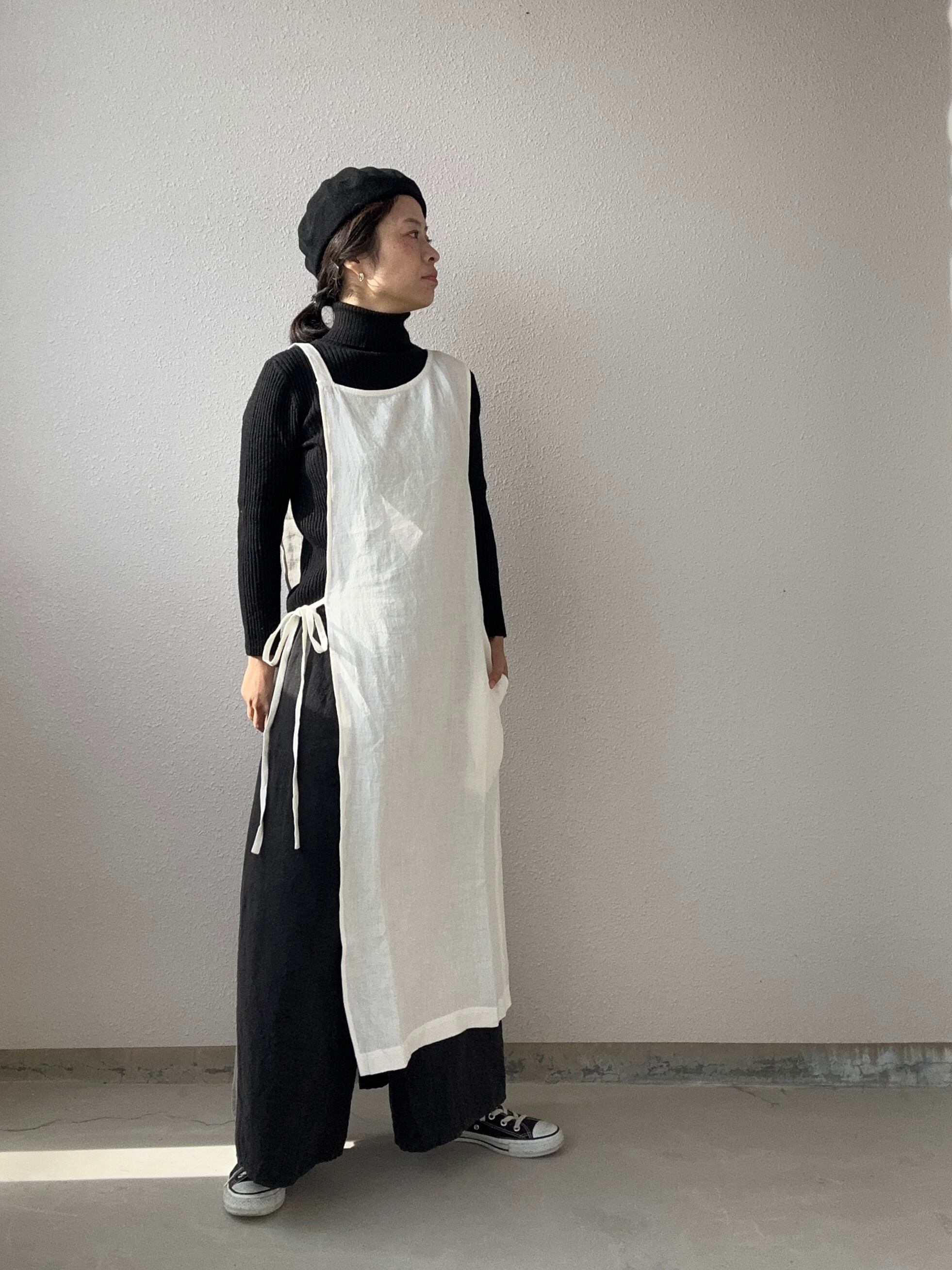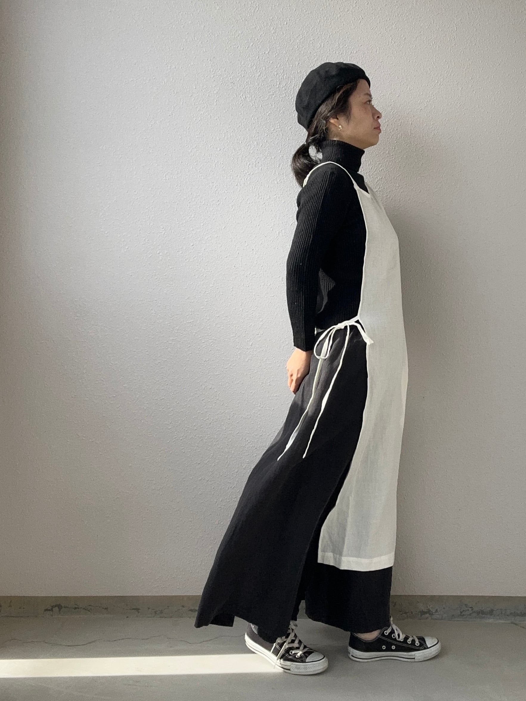 アシンメトリーエプロンワンピ