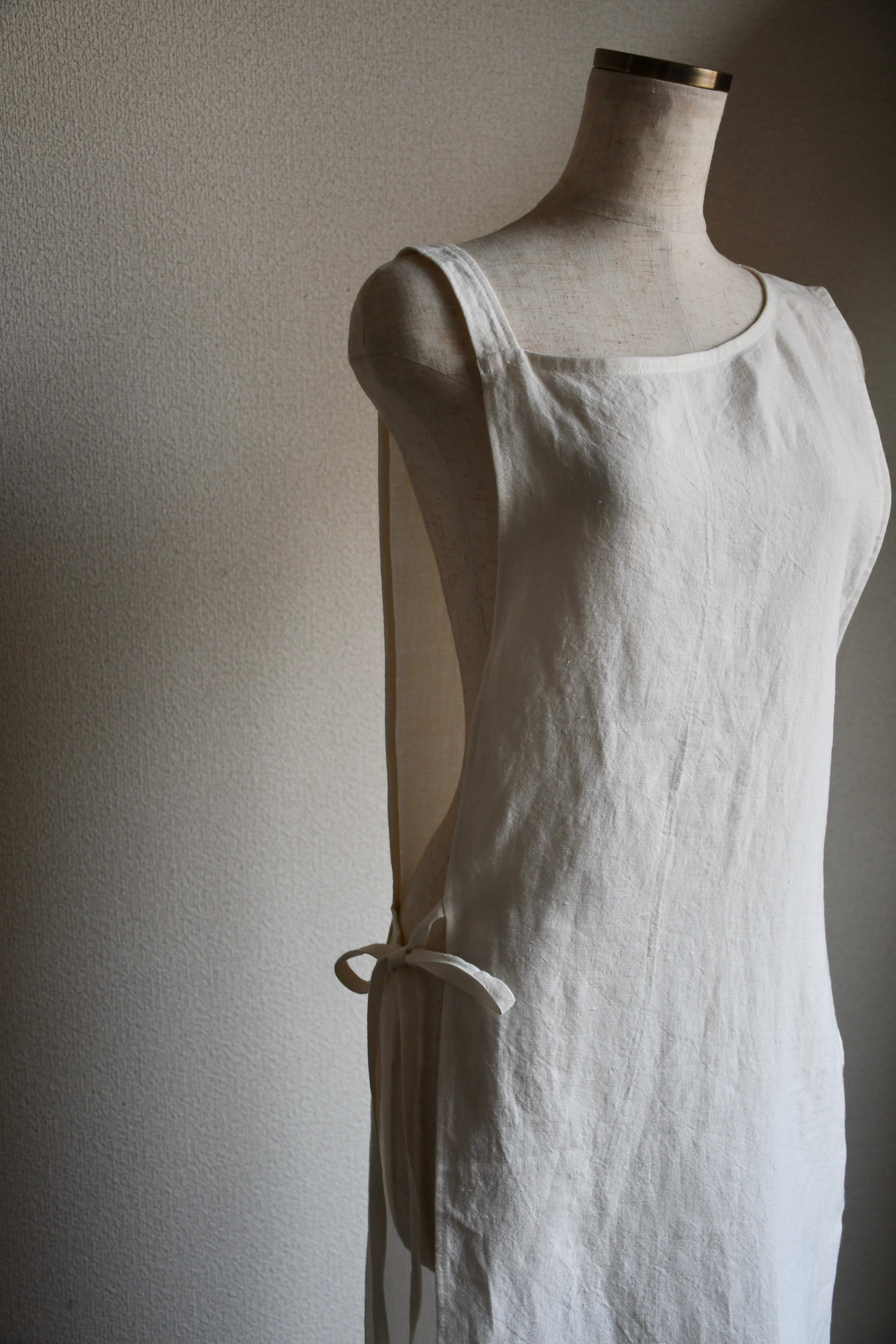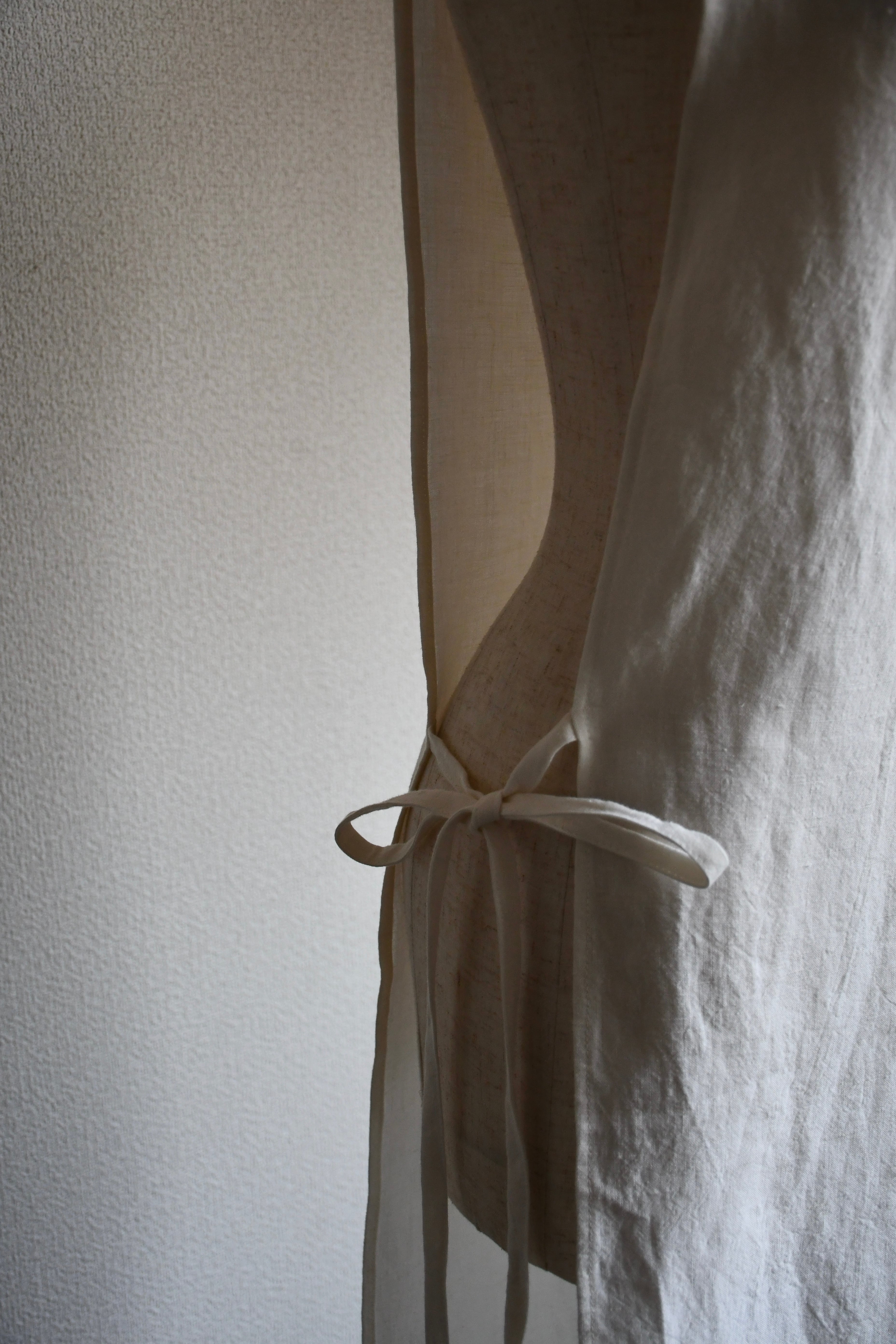 被りタイプで右サイドをリボンで結んで着用します