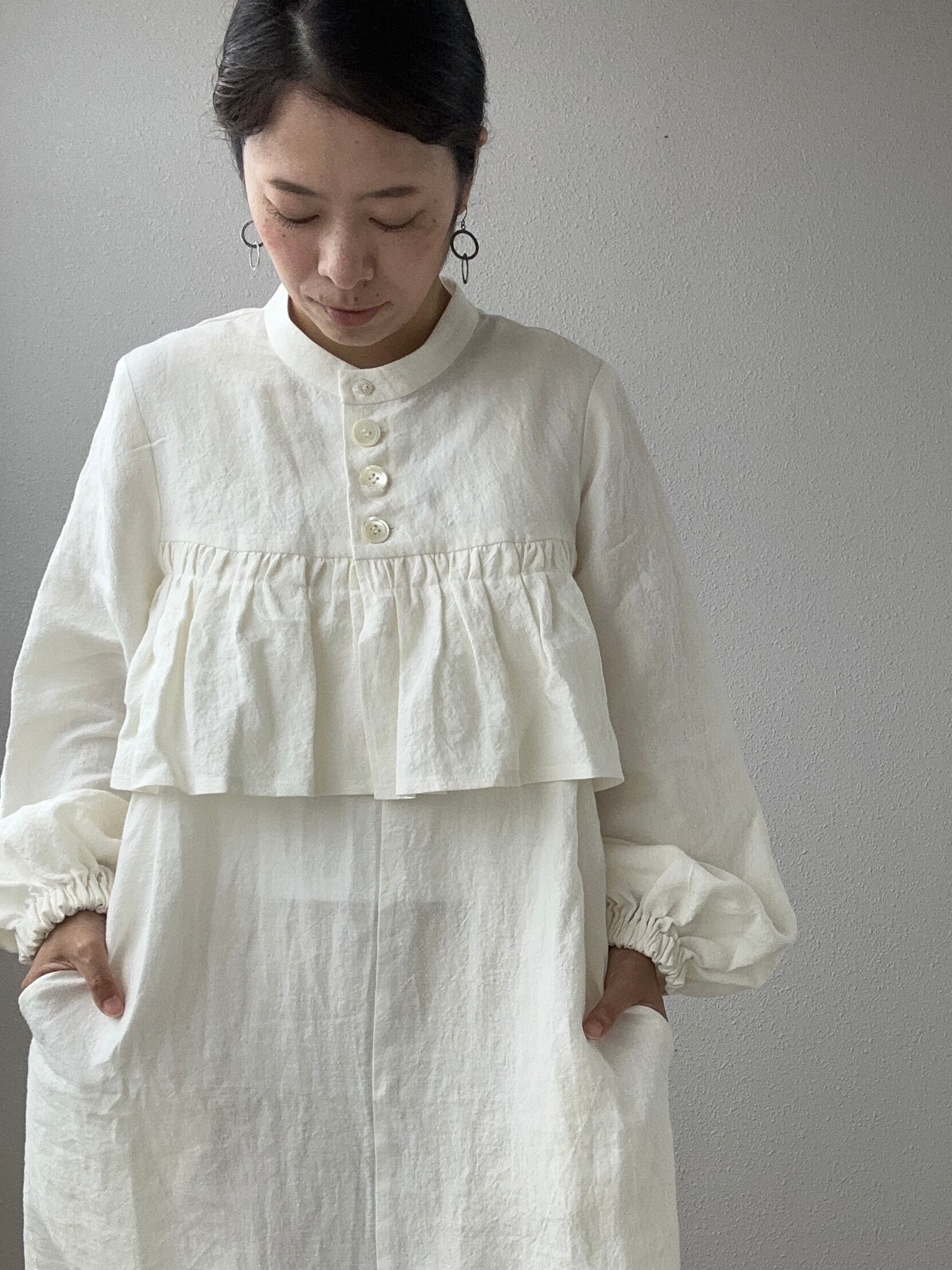 昨日ご紹介したバッククロスワンピと一緒に着ていただくとワンピの立体感と相まって尚大人っぽい雰囲気◯