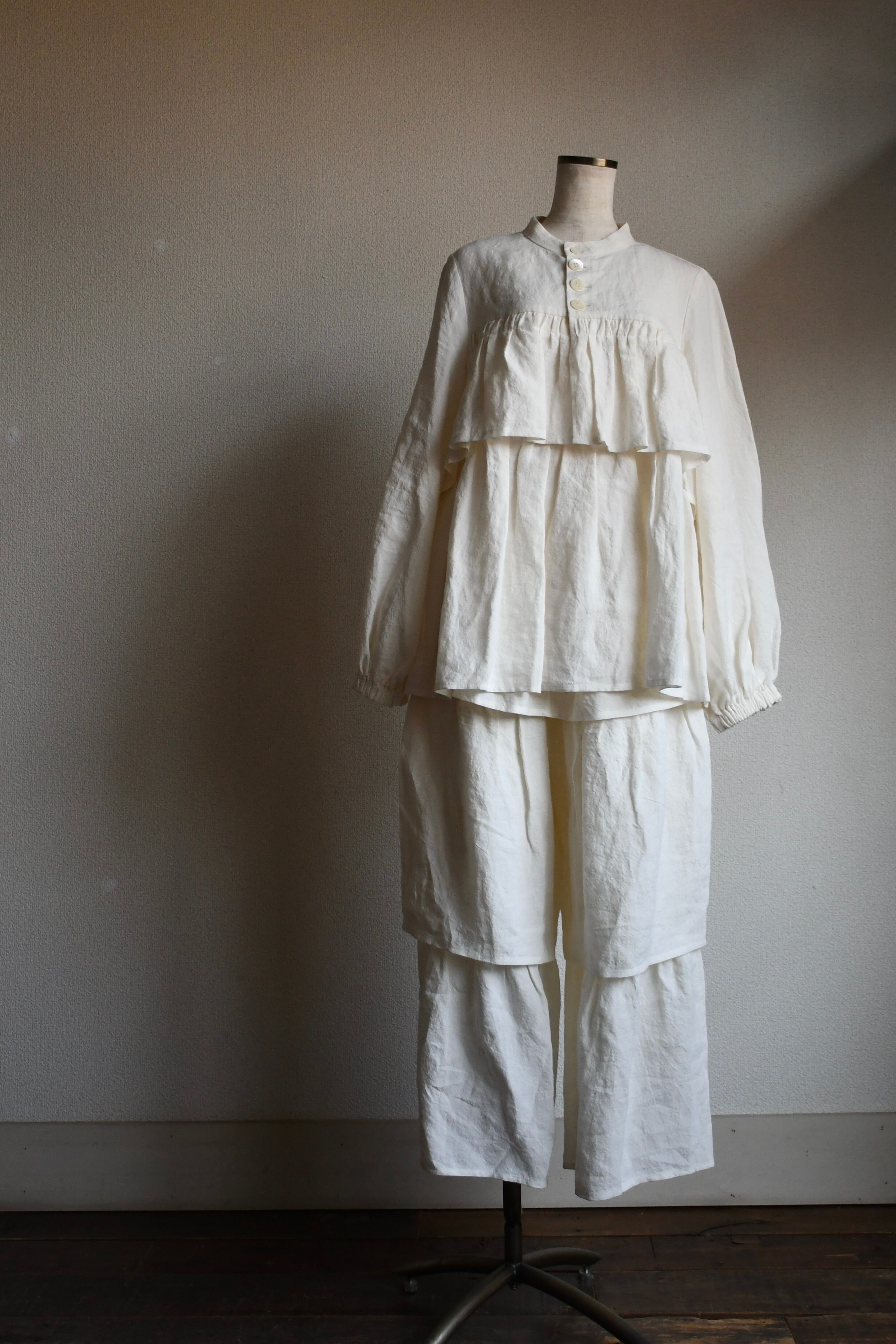Linen frill short bolero Col:White