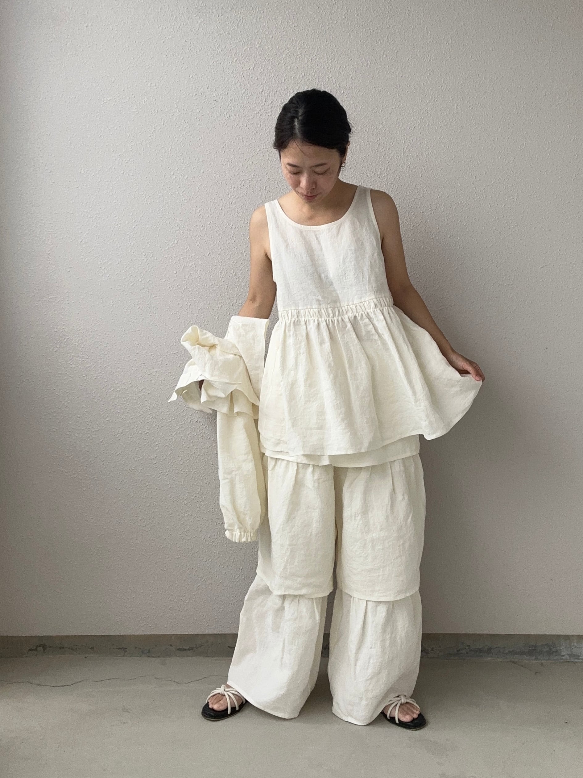 ボレロ+ティアードパンツとセットで着てもボリュームが可愛いフリルチュニックタンクトップ