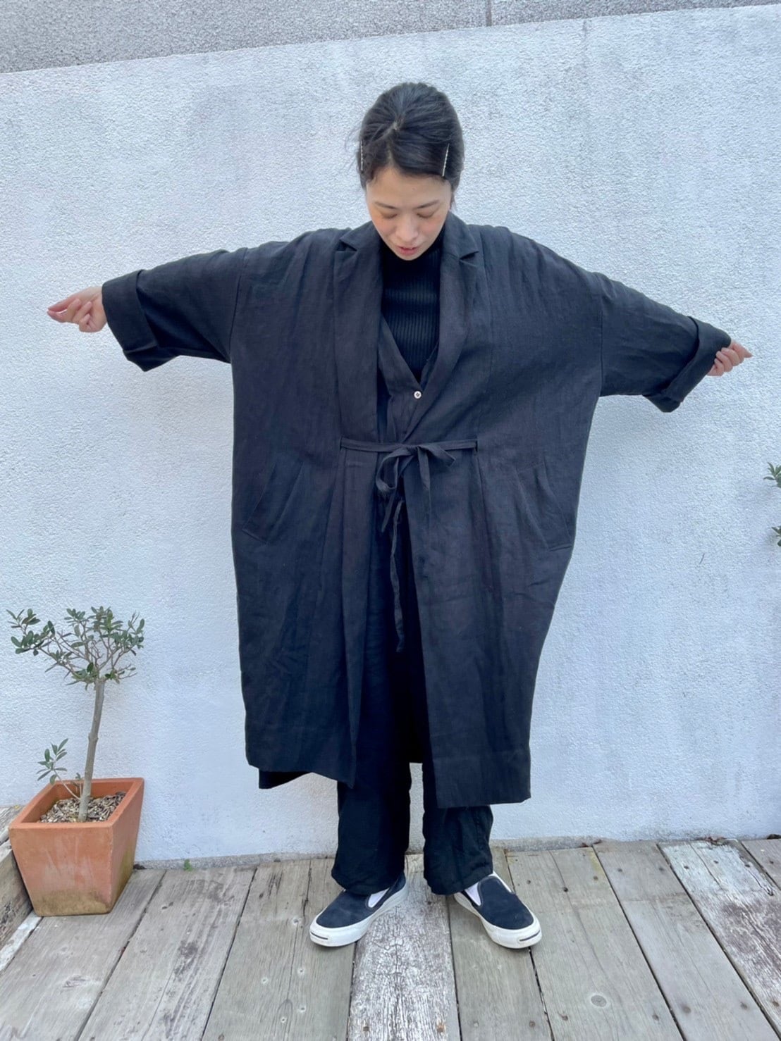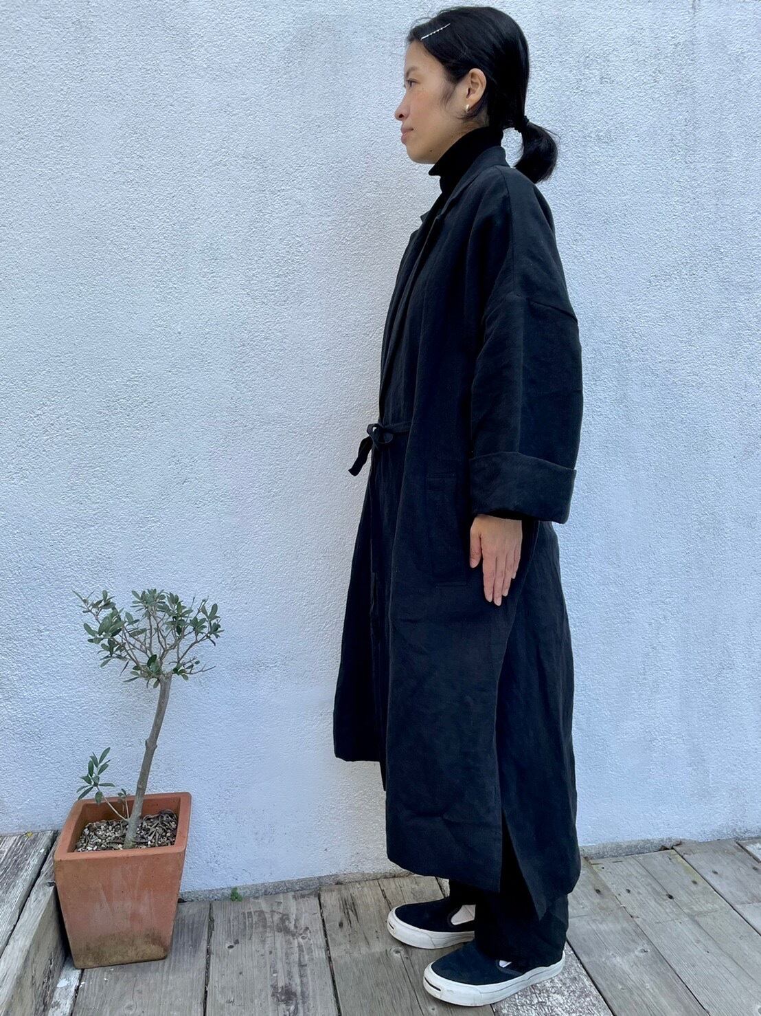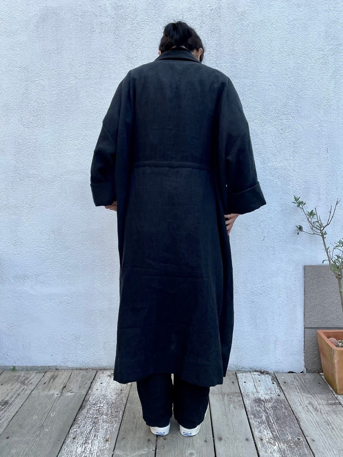 リネンロングコート 黒