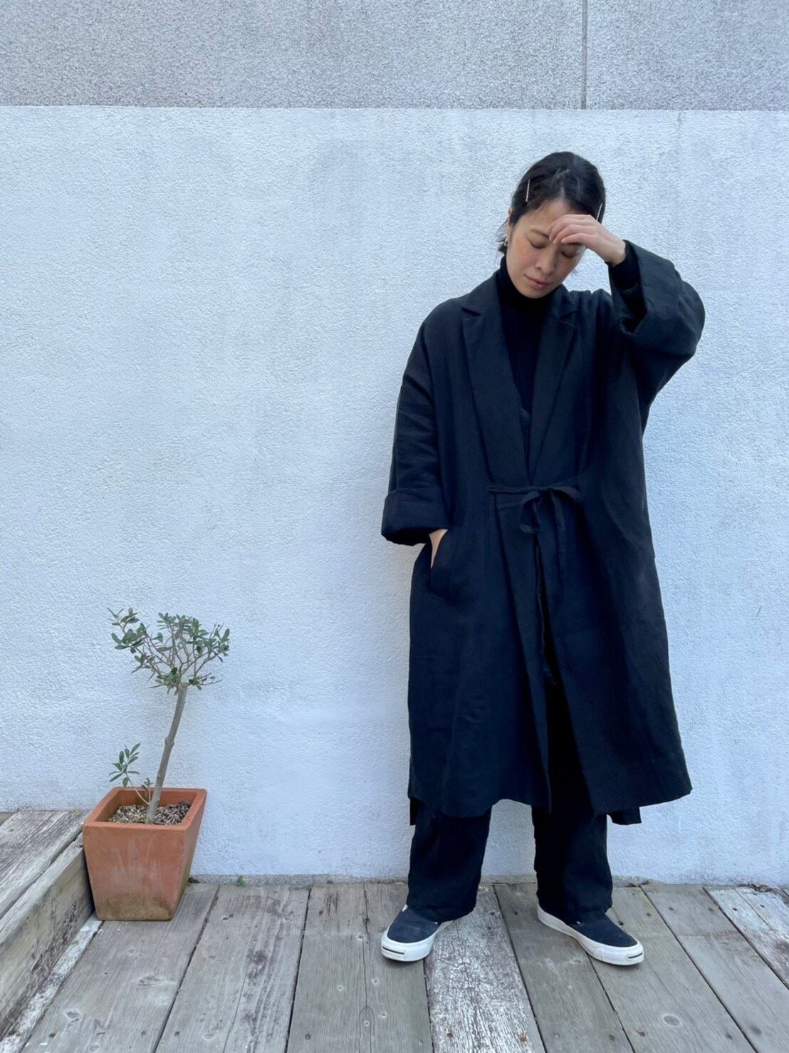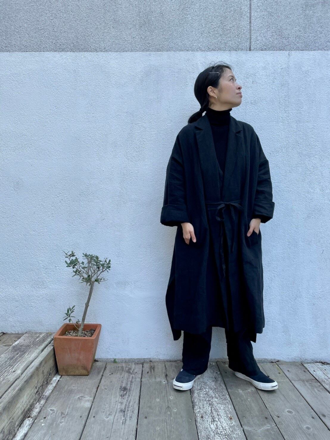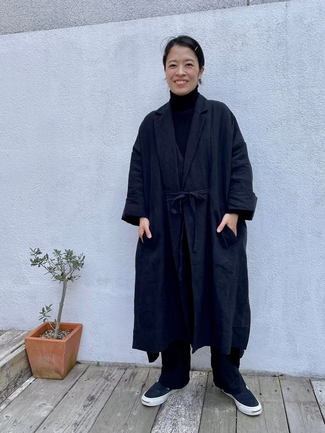 リネンロングコート 黒